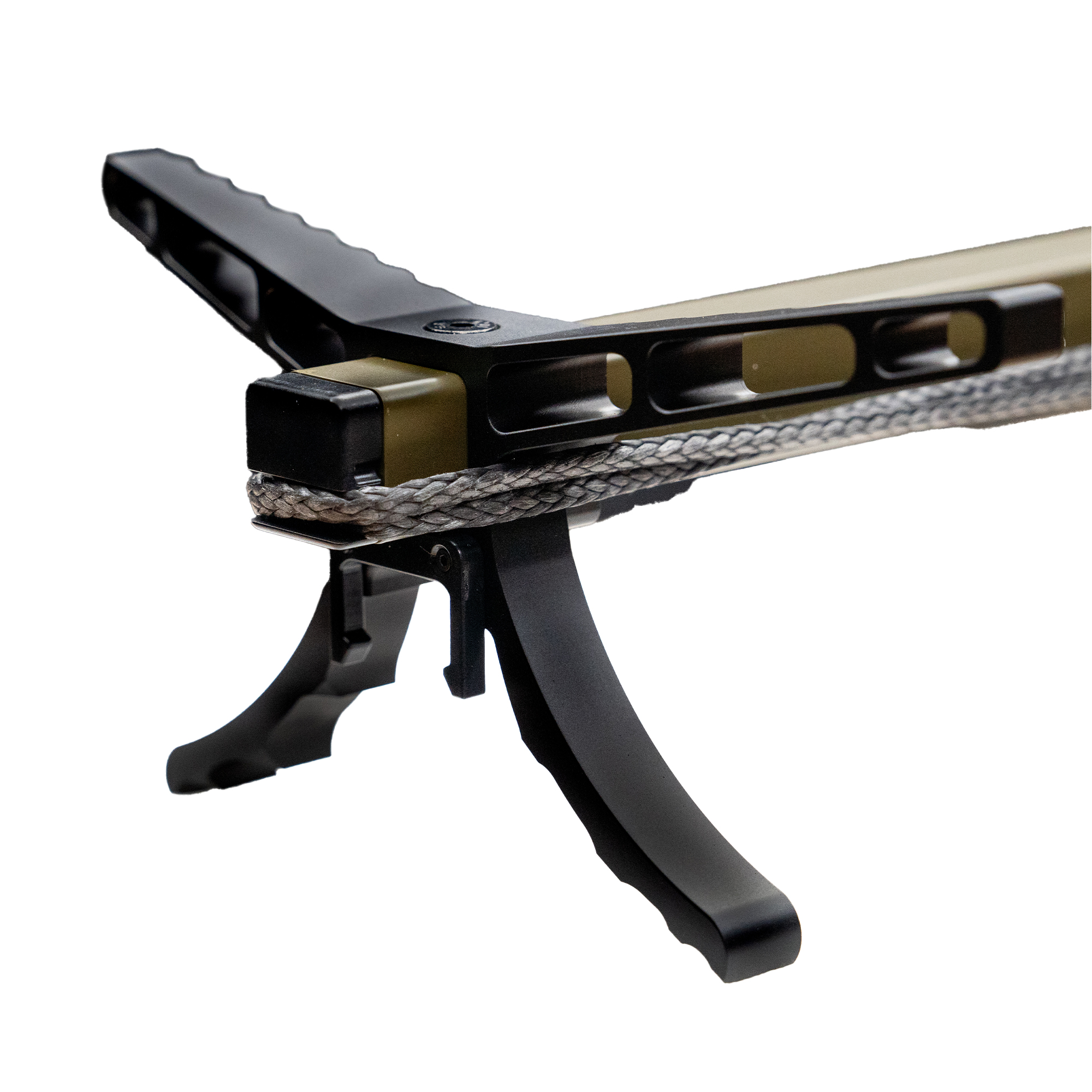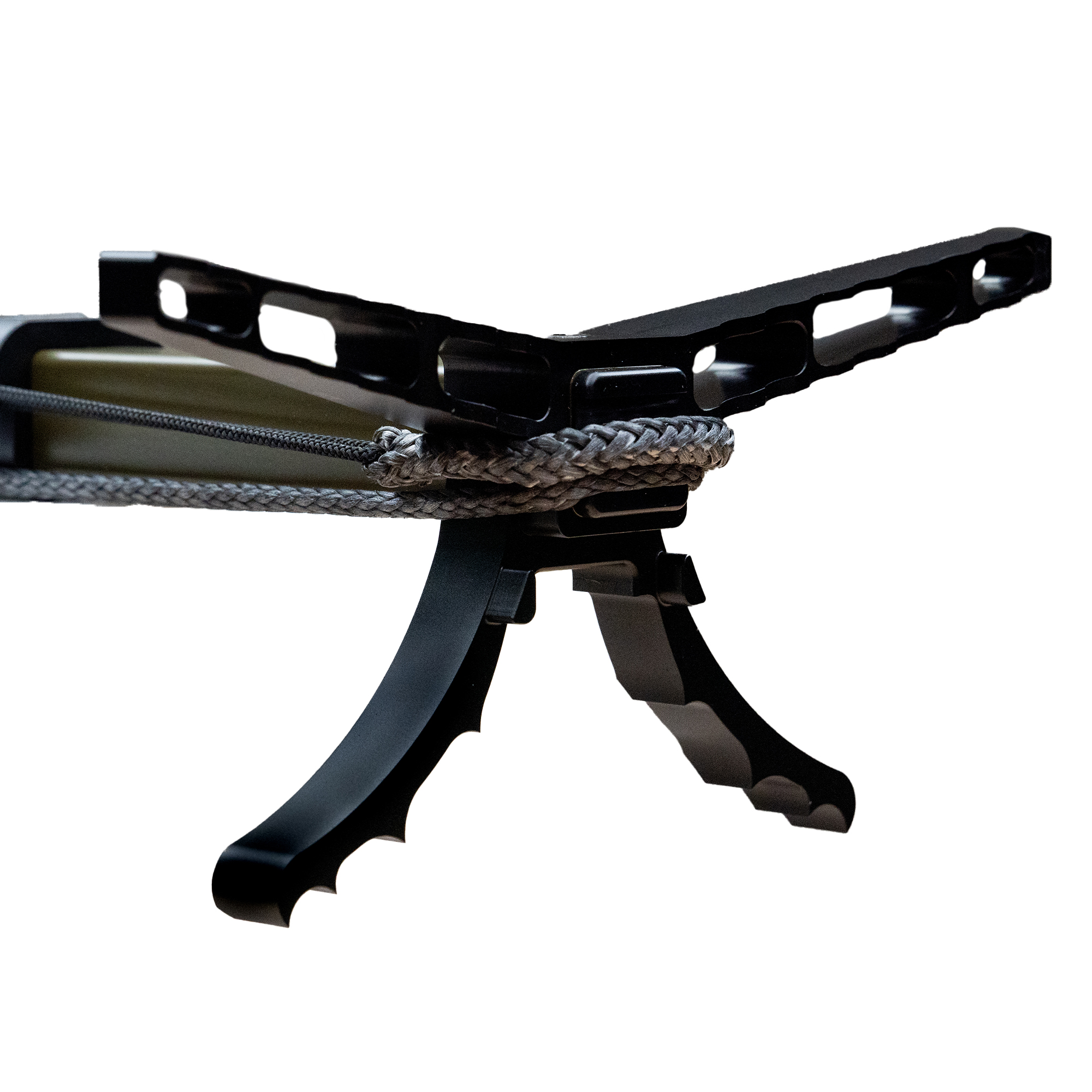 Gone are the days of fumbling with tangled ropes and webbing. The Solution Stick™ features integrated rope management channels that neatly and easily store your rope without interfering with stack-ability. The 5 mm attachment rope offers 81 inches of UHMWPE securement complete with a shock cord termination to wrap tightly around the stick for a tidy and efficient solution.